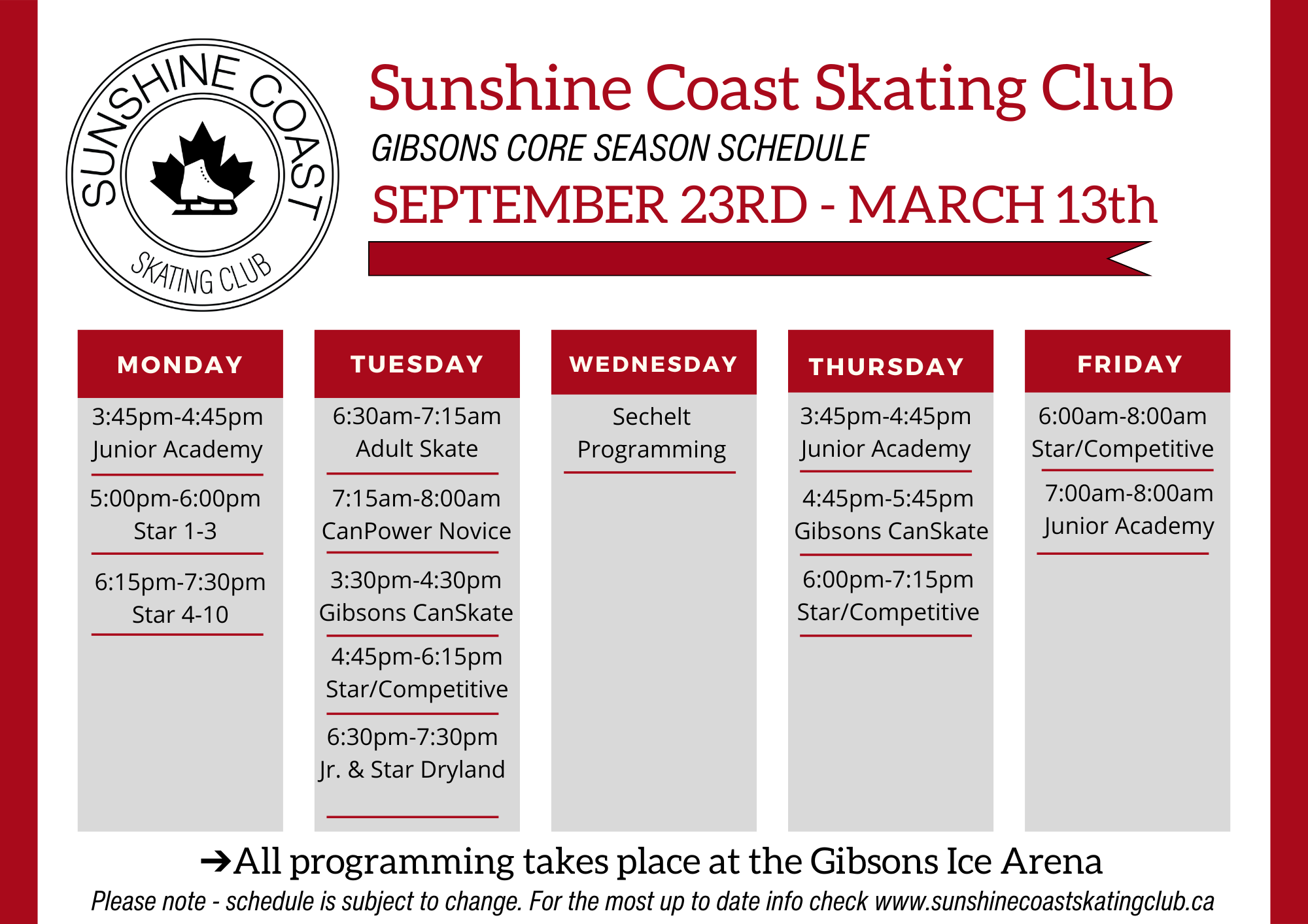 - Thursday March 5th, 2026 - GIBSONS - CanSkate no session